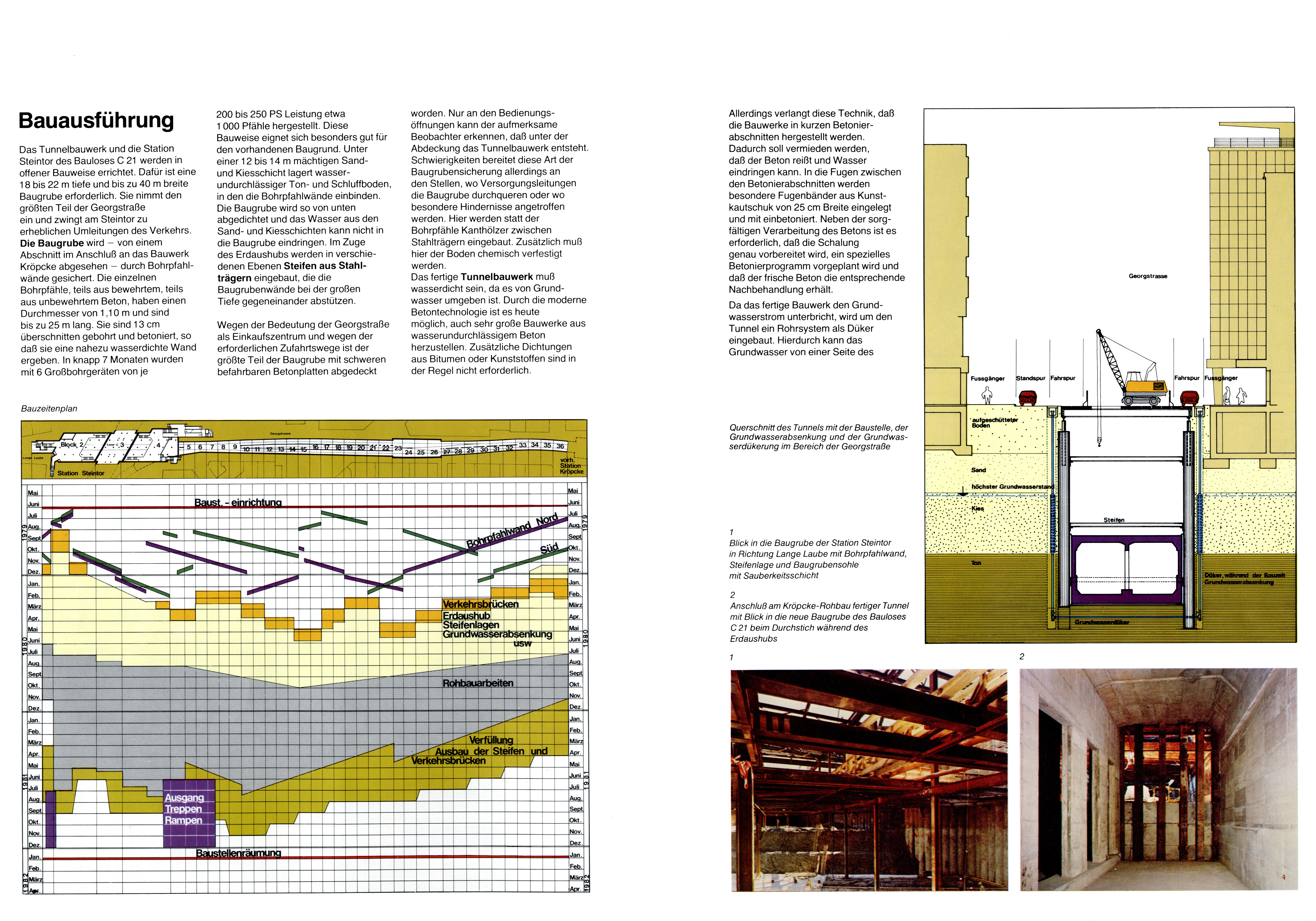 In dieser Infobroschüre aus dem Jahr 1986 wird das Baulos C 01 Schildvortrieb (Aegi Richtung Marienstraße) detailliert vorgestellt, inklusive detaillierten technischen Zeichnungen, Längsprofil und Querschnitte der Strecke.