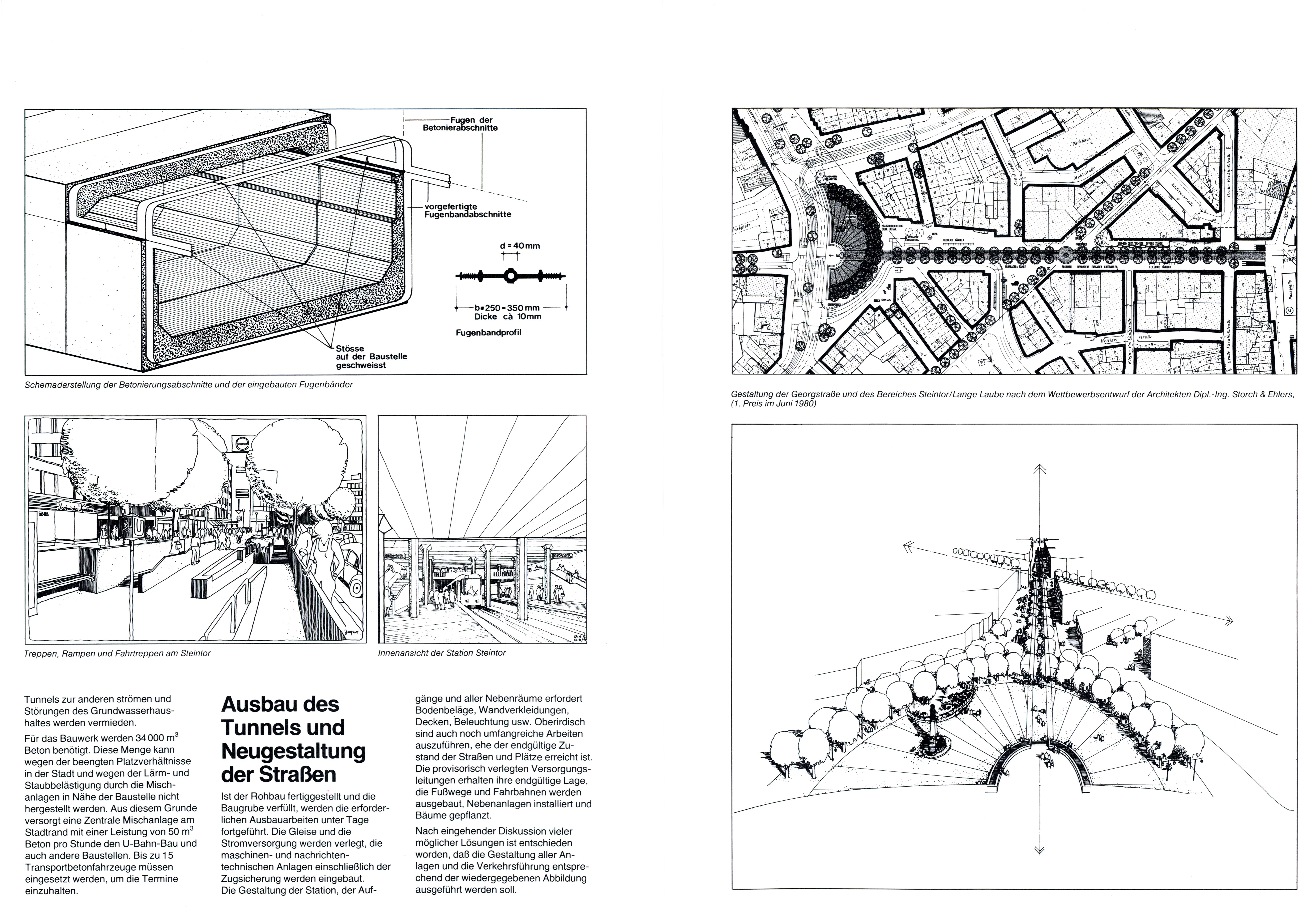 In dieser Infobroschüre aus dem Jahr 1980 wird das Baulos C 21 entlang der Georgstraße mit der Station Steintor detailliert vorgestellt, inklusive Bauzeitenplan und Neugestaltung des Steintor-Platzes mit der Georgstraßenachse.