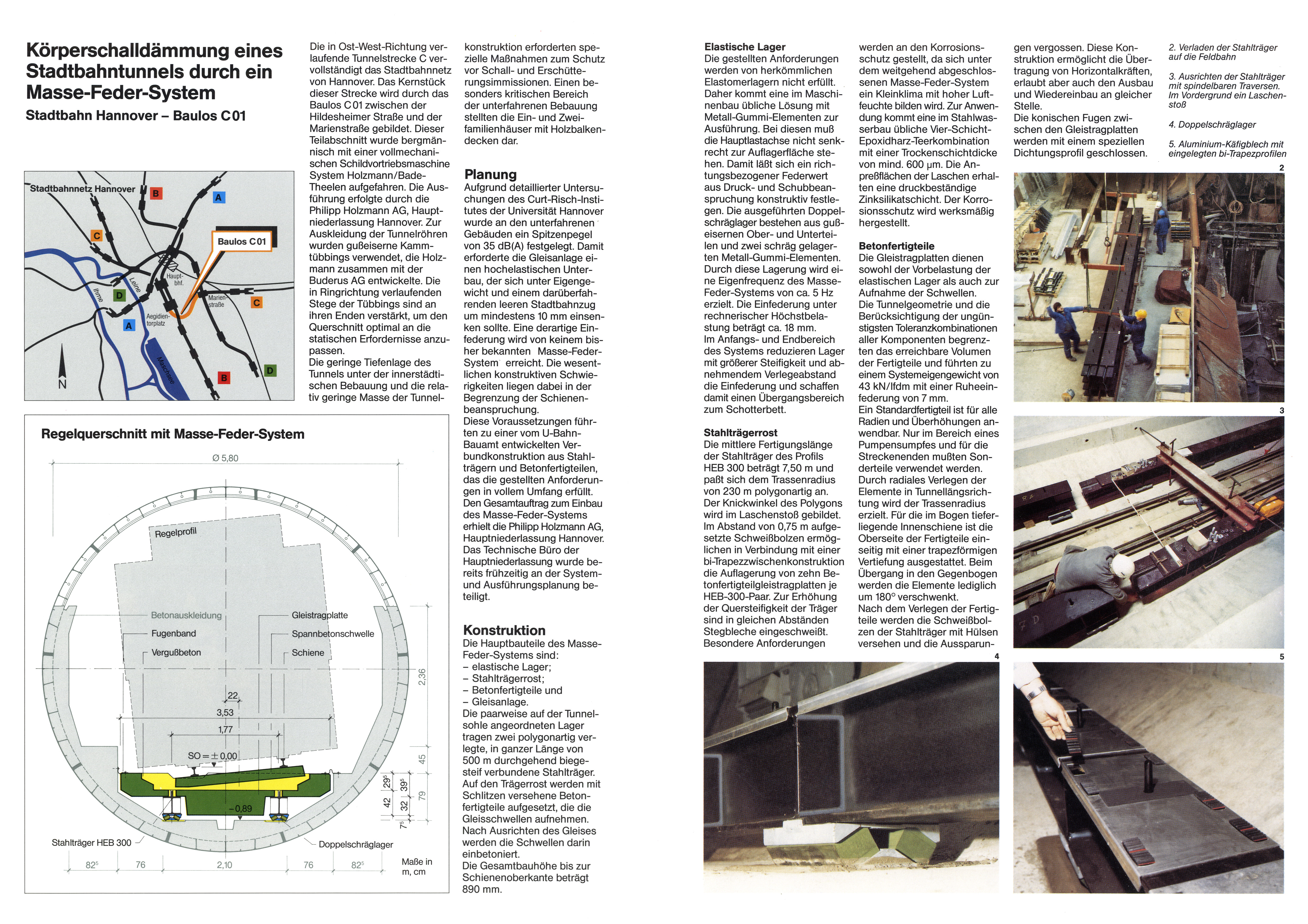 In dieser Infobroschüre aus dem April 1988 wird für das Baulos C 01 das Masse-Feder-System vorgestellt, das als neuartiger Konstruktion eines Schienenwegs im Tunnel für Schall- und Erschütterungsschutz dienen soll.