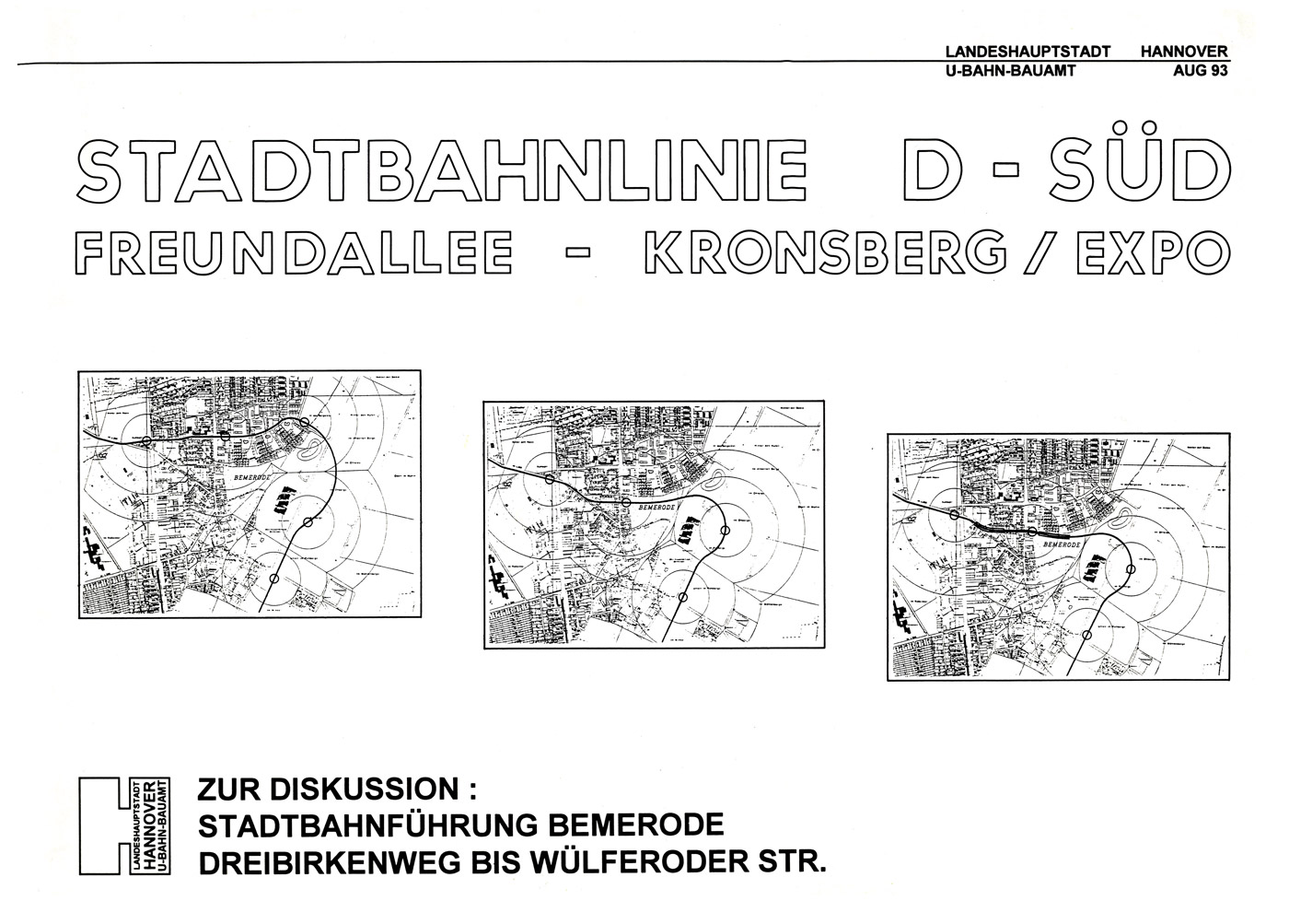 | Infobroschüre | Zur Diskussion: Stadtbahnführung Bemerode | 1993 | Download |